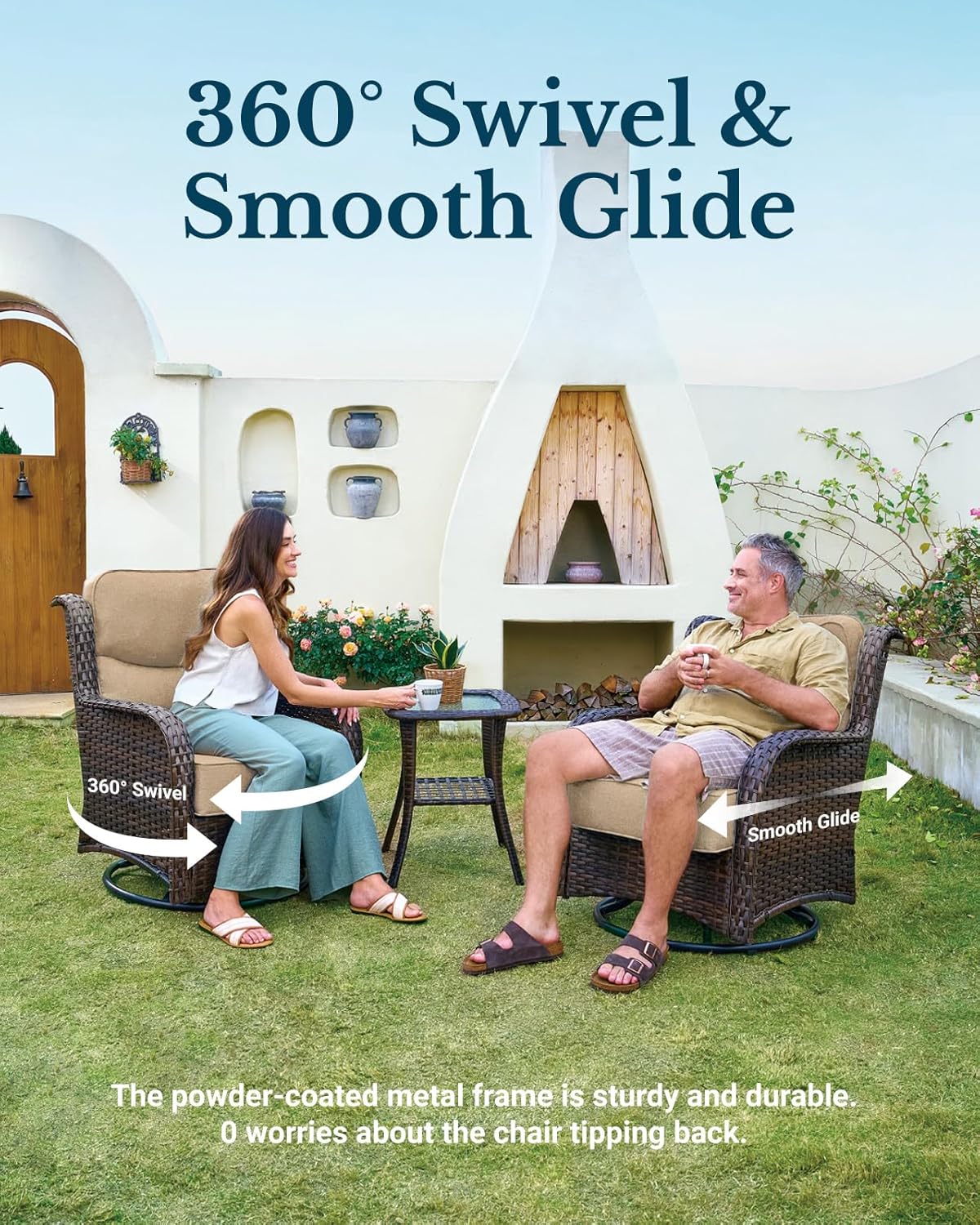 Weather-Resistant Wicker & Aluminum Frame — durable, rust-proof and garden-ready.