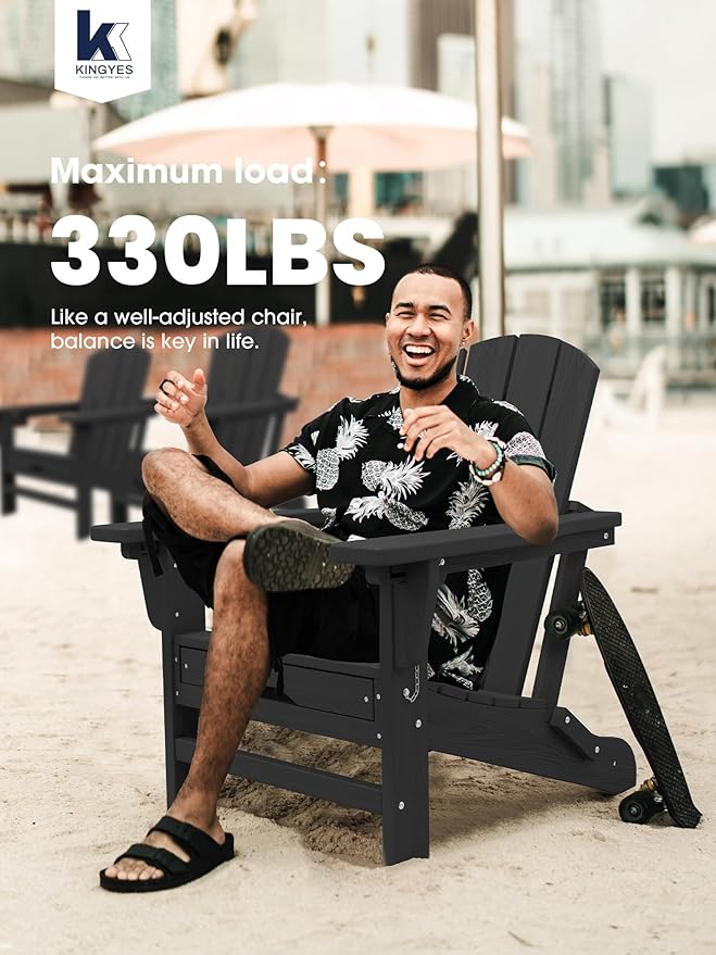 KINGYES Folding Adjustable Adirondack Chair with Wide Armrests, Weather-Resistant Build and Space-Saving Design for Patio, Deck, Garden & Fire Pit