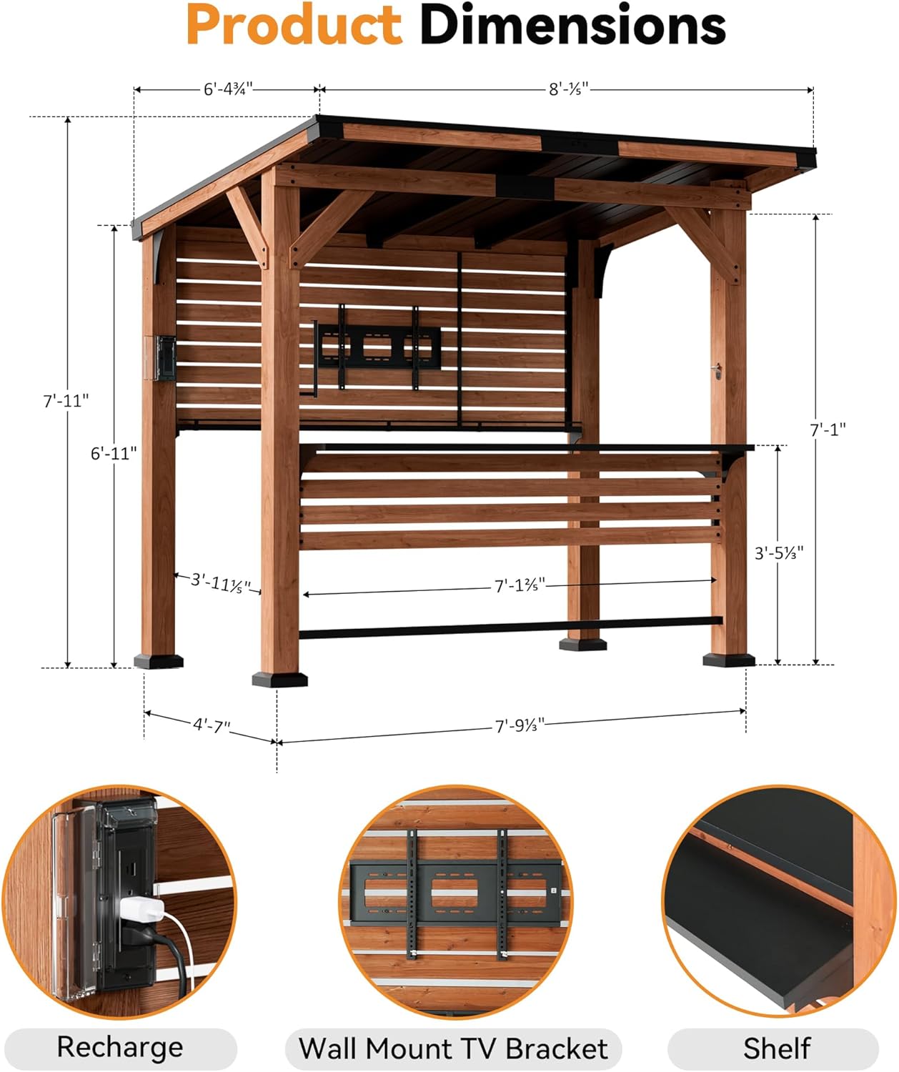 The shelves provide extra storage, which is useful during parties or casual gatherings. Plus, the open design keeps the space bright and airy while still giving you a dedicated bar area. Because the pavilion has a modern style, it fits many patio and backyard layouts.