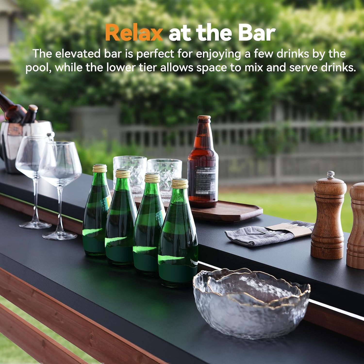 This piece is ideal for hosting friends, mixing drinks or setting up a small outdoor buffet. It works well beside a pool, near a dining set or in any backyard lounge area. The materials are weather-ready and easy to maintain, so it stays looking good with very little work.