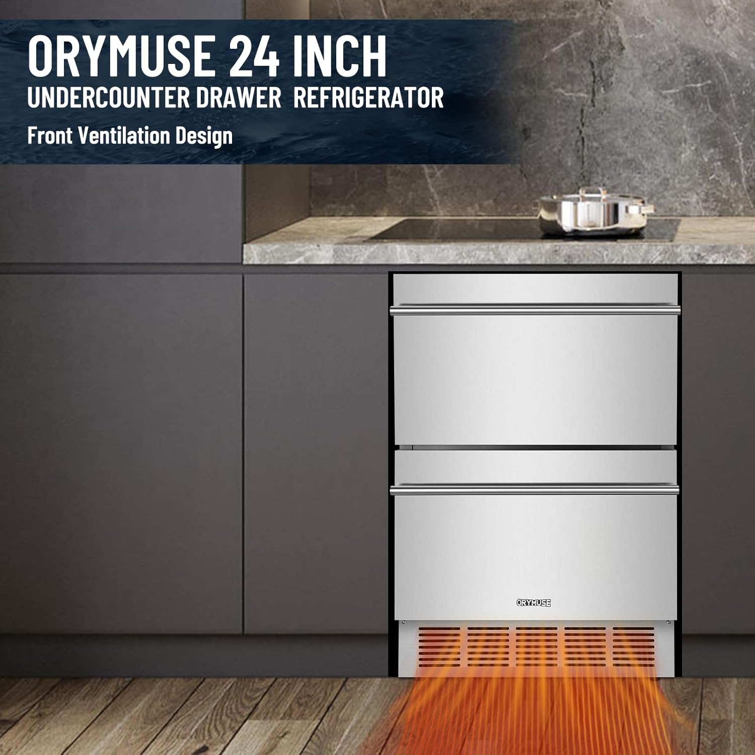 ORYMUSE Outdoor Undercounter Refrigerator with Stainless Steel Body, Compressor Cooling, Double Door & Adjustable Thermostat — Great for Patio Bar, Poolside or Outdoor Kitchen