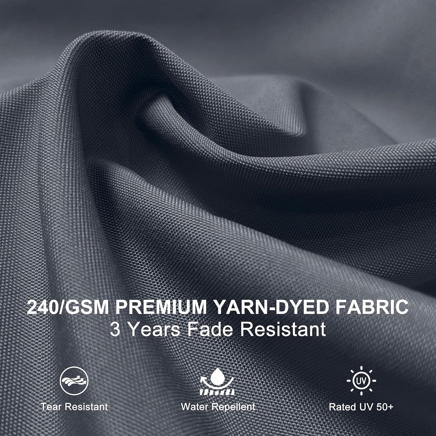 UV-Resistant Fabric — premium 240 gsm polyester canopy provides long-lasting fade protection.